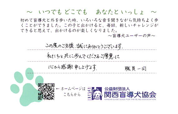 盲導犬協会への募金ありがとうございました.